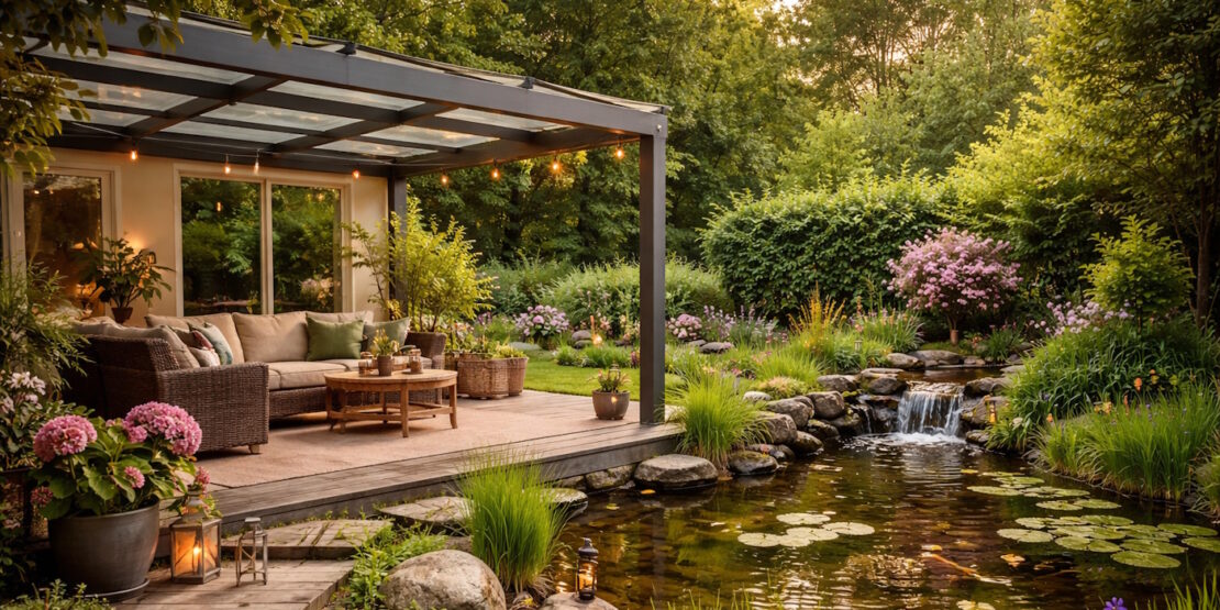 Die Überdachung der Terrasse ist nicht nur praktisch, sondern auch ein wichtiges Gestaltungselement. Sie spendet Schatten, schützt vor Regen und prägt die Wirkung des gesamten Gartens.